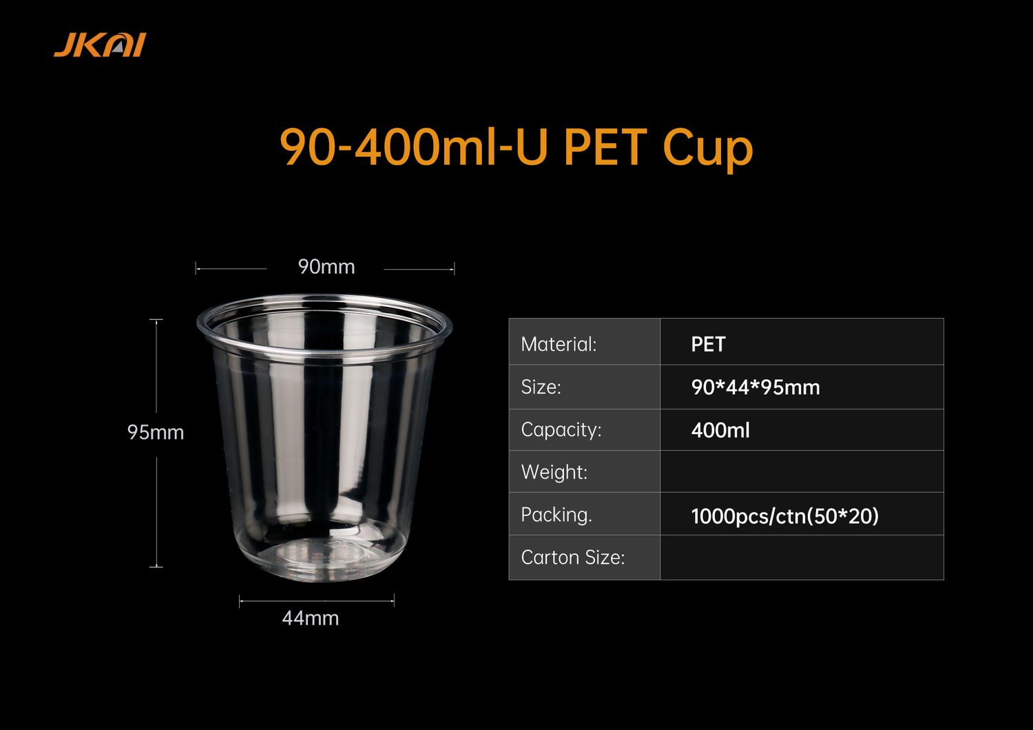• 90mm U-shape 400ml PET Cup